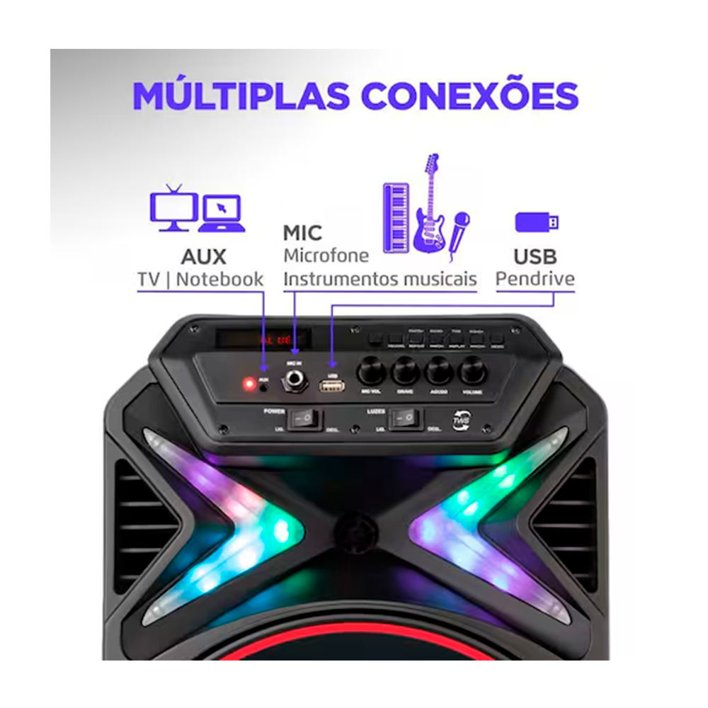 Caixa Amplificada Mondial CM-400 é ideal para você que aprecia som de qualidade, seja nas festas e reuniões com amigos ou família. Ela tem conexão Bluetooth, 400W RMS de potência, oferecendo máxima performance, entrada para instrumentos musicais, USB e SD Card. Seu Display é digital e conta ainda com rádio FM, alça para transporte e rodinhas para transporte. Tudo isso, e ainda uma bateria interna recarregável, pois a música não pode parar.